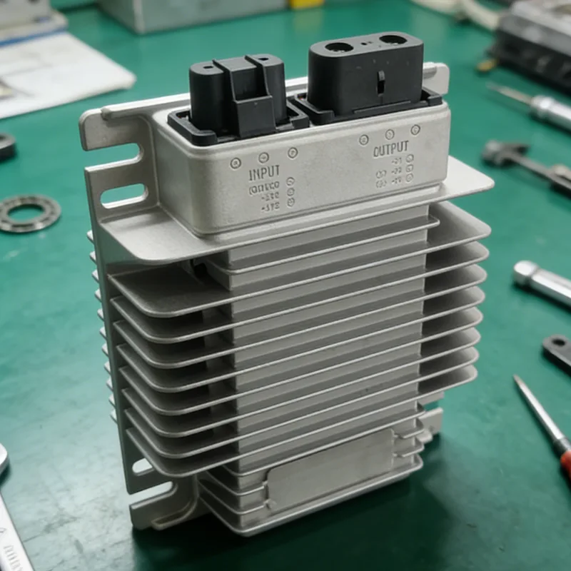 ຫນ້າທີ່ຕົ້ນຕໍຂອງມັນແມ່ນການປ່ຽນພະລັງງານ DC ແຮງດັນສູງຈາກຫມໍ້ໄຟຍານພາຫະນະເຂົ້າໄປໃນພະລັງງານ DC ແຮງດັນຕ່ໍາທີ່ຫມັ້ນຄົງ, ການສະຫນອງພະລັງງານສໍາລັບເຄື່ອງມື, ໄຟ, horns, ການຄວບຄຸມ, ແລະລະບົບໄຟຟ້າອື່ນໆ.
